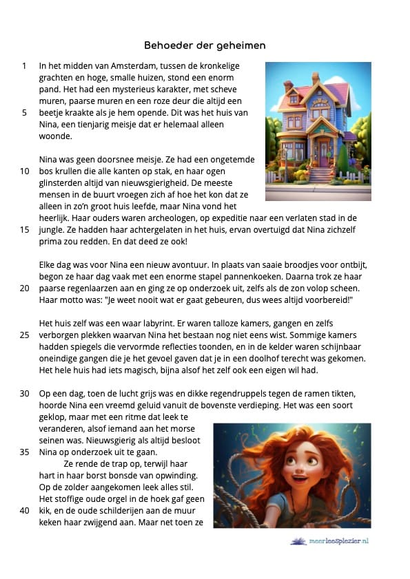Nina woont zonder ouders in een groot huis in Amsterdam. Op een dag ontdekt ze op zolder, achter een boekenhuis, een geheime gang. Aan het einde van de gang ontdekt ze een geheime kamer met daarin een oude man, de bewaker van alle geheimen.